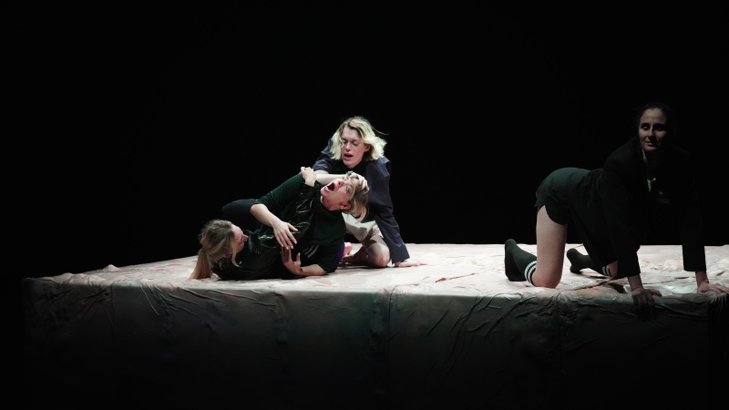 4 Women Getting Sick is a performance where scenography is used as both a storytelling medi- um and a co-actor. It is an enchanting and unsettling theatrical experience that provokes reflec- tion, where absurdity, humor, and existential questions come together to invite us to rediscover the world and our role in it. An absurd ode to female territory.