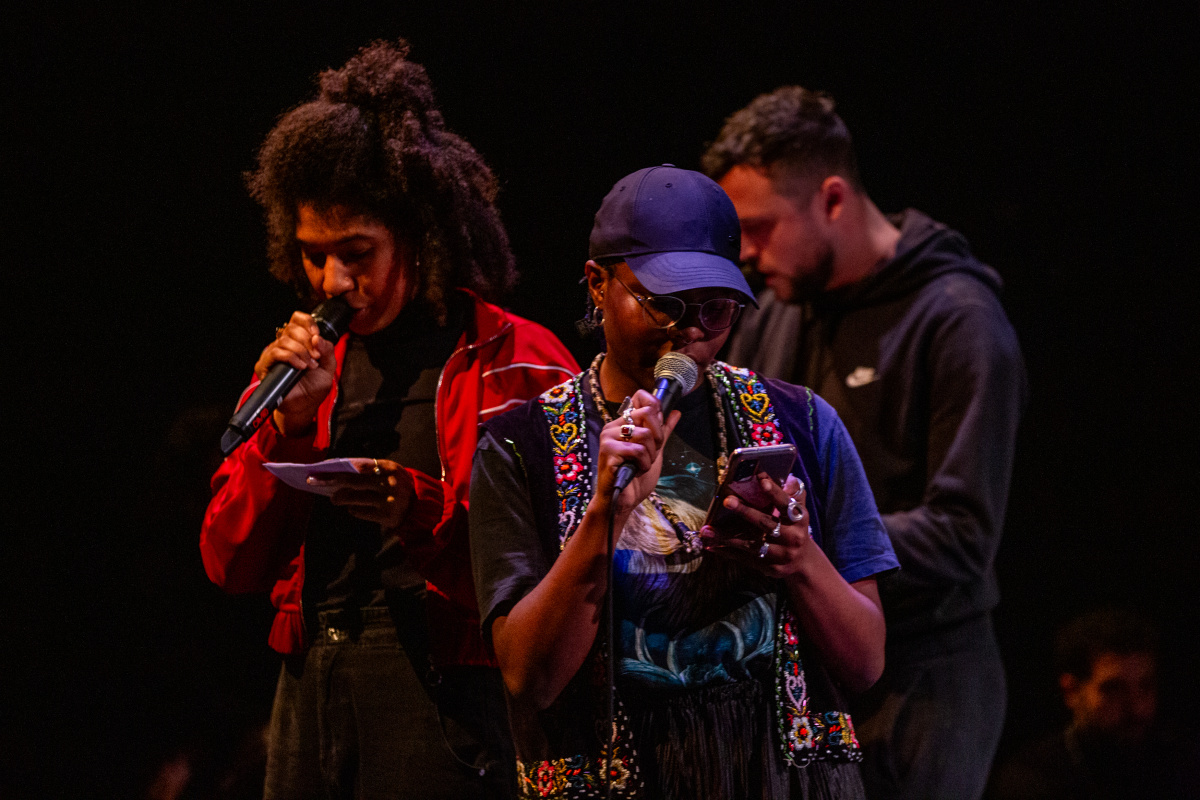 ‘Four Walls’ is a hip-hop ritual that creates space for the anger, fear, mourning, celebration and hope that comes with losing an old world and welcoming an unknown future. A bizarre musical mix of hip-hop mantras, slam choruses, screeching guitars, banging drums and freestyle prophecies.