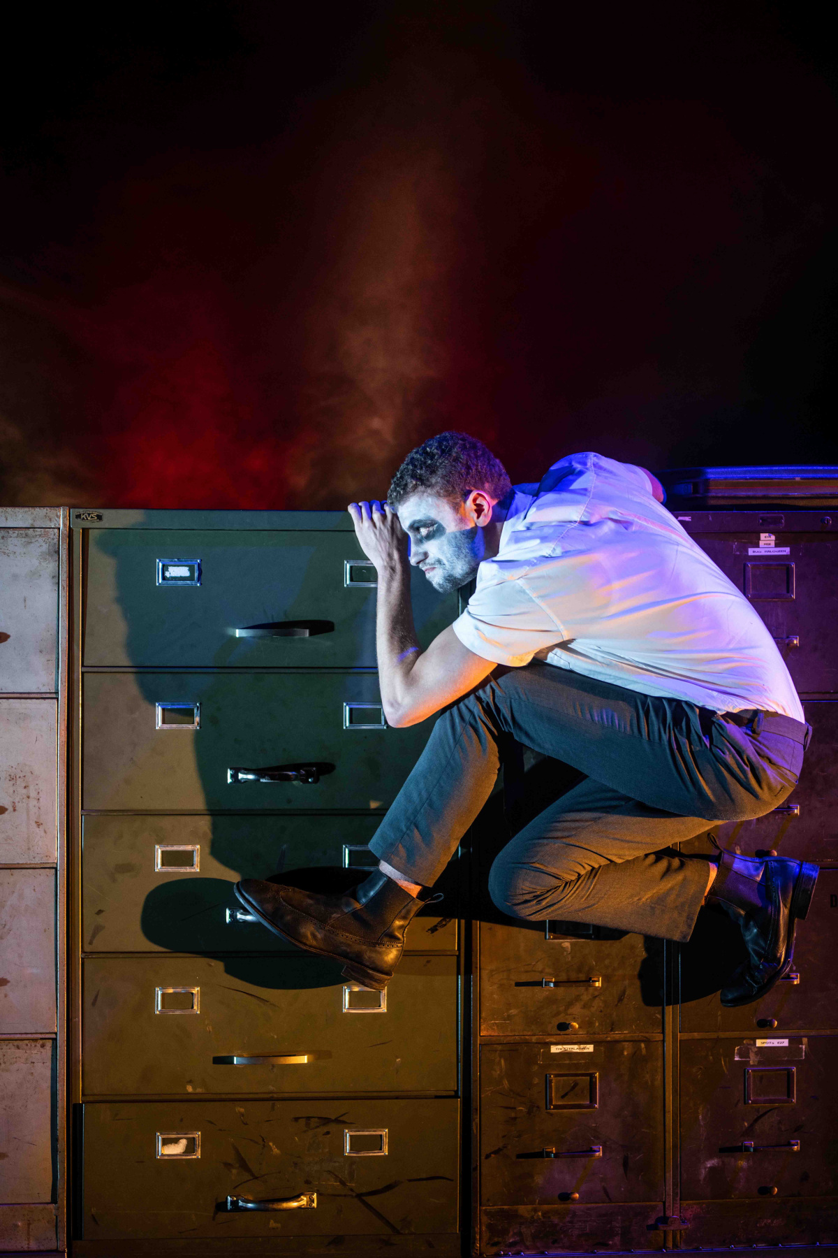 Maar eerst: wat bezielt een jonge kunstenaar om in deze drek van de geschiedenis te springen? Een figuur te belichamen die bezweek onder het gewicht van een oorlogsmachine en hem (postmortem) een stem te geven? Met humor en verbeelding om de bittere ernst te verdoezelen?